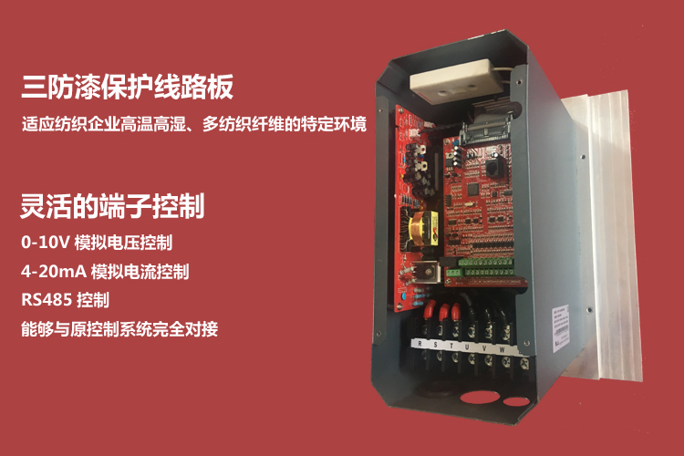 完全替代細(xì)紗機(jī)原裝科比變頻器,采用和原車(chē)一致的風(fēng)道式安裝,安裝尺寸及定位孔尺寸完全一致。參數(shù)已設(shè)置好,按我公司提供的接線圖接上線路即可使用,簡(jiǎn)單快捷。